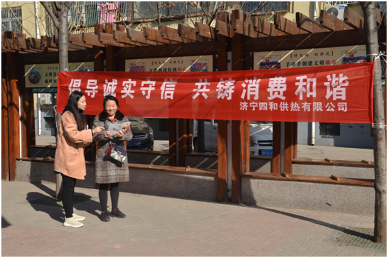 2019年3月15日上午,濟寧四和供熱有限公司客服部宣傳小隊前往吉祥社區(qū),開展以“倡導(dǎo)誠實守信 共鑄消費和諧”為主題的宣傳活動,為百姓進行義務(wù)宣傳。