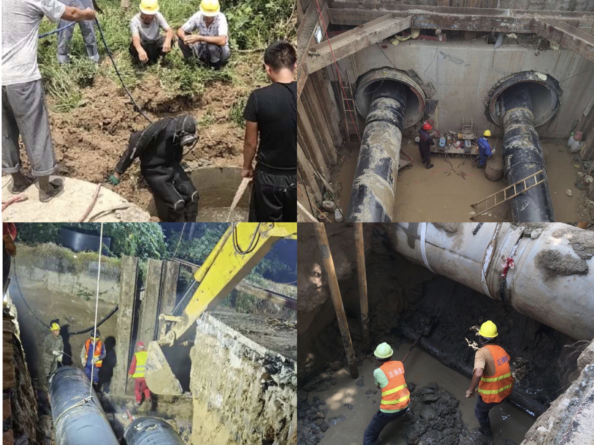 西部熱源替換工程嘉祥電廠線供熱管網(wǎng)總長(zhǎng)15.3公里,工程作業(yè)面環(huán)境復(fù)雜。涉及清障7.5公里,穿越老運(yùn)河1處、頂管作業(yè)2處、涵洞4條、并行污水管1公里。面對(duì)工期緊、任務(wù)重、施工難度大等困難,參與建設(shè)的建工集團(tuán)和熱電集團(tuán)項(xiàng)目負(fù)責(zé)人團(tuán)結(jié)一心,齊抓共管,攻堅(jiān)克難,全力以赴推進(jìn)“清障協(xié)調(diào)、施工技術(shù)、材料保障”等工作。項(xiàng)目施工中,西一標(biāo)段匯祥路東段、西二標(biāo)段等雨水、污水管道,與施工管道并行,且老化嚴(yán)重,經(jīng)常出現(xiàn)雨水、污水管網(wǎng)泄露后倒灌溝槽的情況。項(xiàng)目部在地下管網(wǎng)資料不齊全的情況下,采用“蛙人”潛入污水中,探查漏點(diǎn)進(jìn)行封堵漏。由于工作坑面積大,漏水點(diǎn)位小,“蛙人”們?cè)谖鬯幸惶幰惶幱檬指袘?yīng)摸排,每次需要潛入污水中數(shù)小時(shí)才能完成,對(duì)施工工作造成極大困難。安居街道3.7公里施工路段緊鄰老運(yùn)河,地下水位淺,基坑強(qiáng)排水降水效果不明顯,項(xiàng)目部集思廣益,通過(guò)打降水井、地面焊接吊入溝槽減少低水位作業(yè)空間等方式,保障項(xiàng)目如期進(jìn)行。