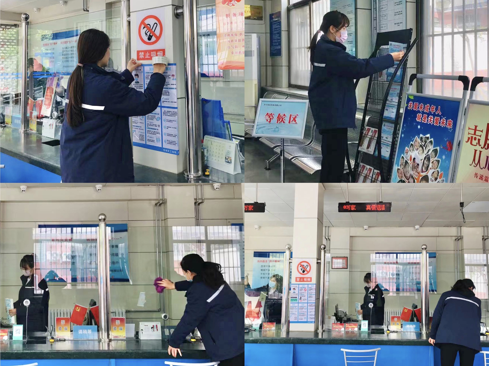 為認(rèn)真落實(shí)市委、市政府關(guān)于“創(chuàng)城”各項(xiàng)工作安排和部署,進(jìn)一步鞏固提升濟(jì)寧市創(chuàng)衛(wèi)成果,確保窗口單位營(yíng)業(yè)網(wǎng)點(diǎn)創(chuàng)城任務(wù)全面落實(shí)。近日,濟(jì)寧四和供熱有限公司各營(yíng)業(yè)廳陸續(xù)開展衛(wèi)生清掃工作,切實(shí)做好日常保潔、落實(shí)門前三包責(zé)任,為濟(jì)寧市迎接國家衛(wèi)生城市復(fù)審貢獻(xiàn)四和力量。
