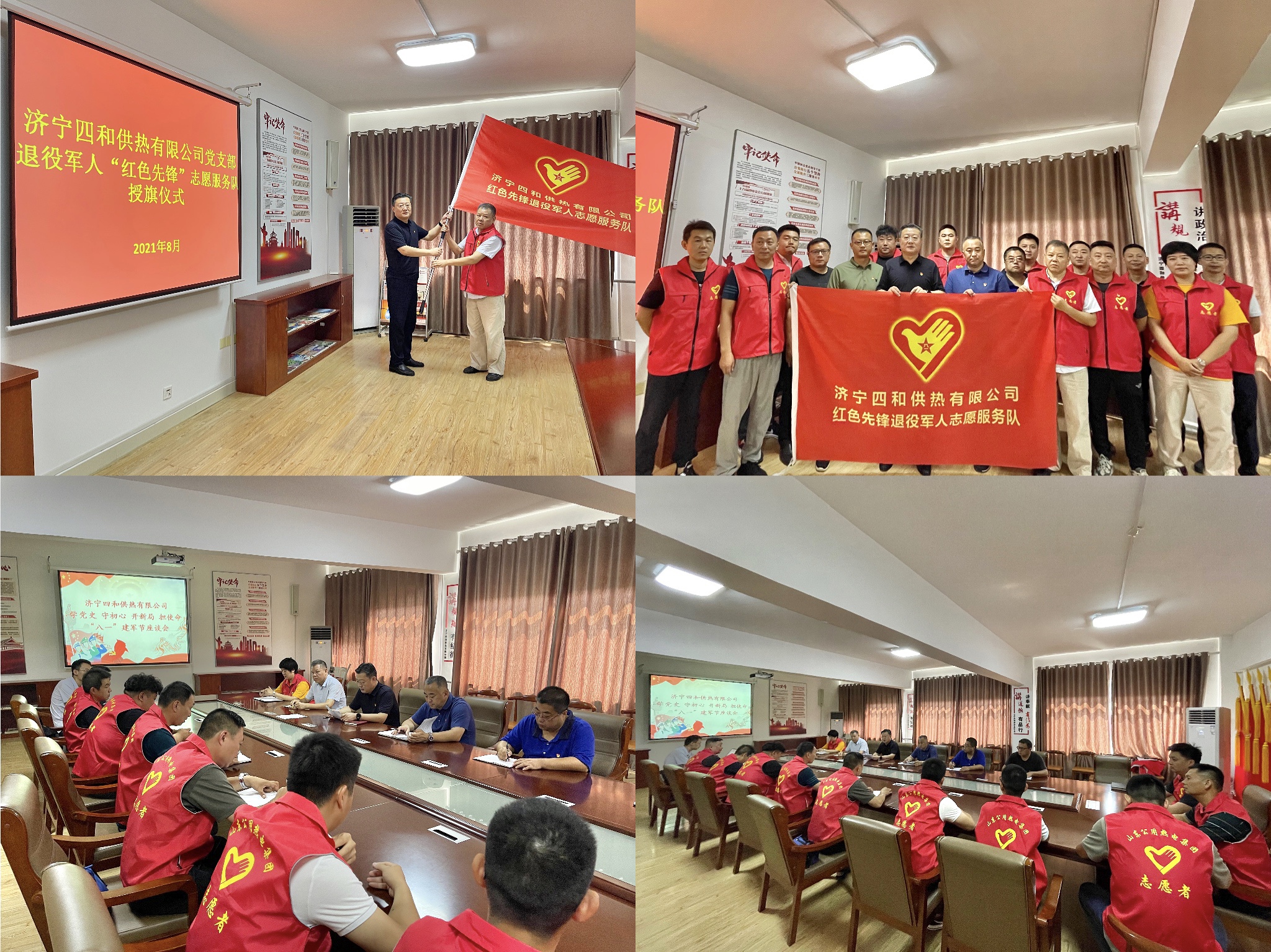 伴隨著激昂的音樂聲,退役軍人代表莊重的從黨支部書記李聲播手中接過志愿服務隊旗幟。鮮艷的旗幟在隊員們手中徐徐展開,這標志著濟寧四和供熱有限公司紅色先鋒退役軍人志愿服務隊正式成立,也意味著公司退伍軍人施展才干、奉獻社會有了更為廣闊的舞臺。今后,志愿服務隊將繼續(xù)以群眾需求為出發(fā)點,以專業(yè)技能為著力點,通過積極探索志愿服務新模式,扎實開展入戶走訪、供熱理論宣講、關愛特殊群體等系列活動,不斷提升用戶滿意度和企業(yè)美譽度。隊員們激動地表示:在做好本職工作的同時,一定要積極參加各類志愿服務活動,把“立足日常、服務群眾、幫扶援助、奉獻社會”的宗旨化為行動,展現(xiàn)新時代退役軍人擔當作為的最美風采。