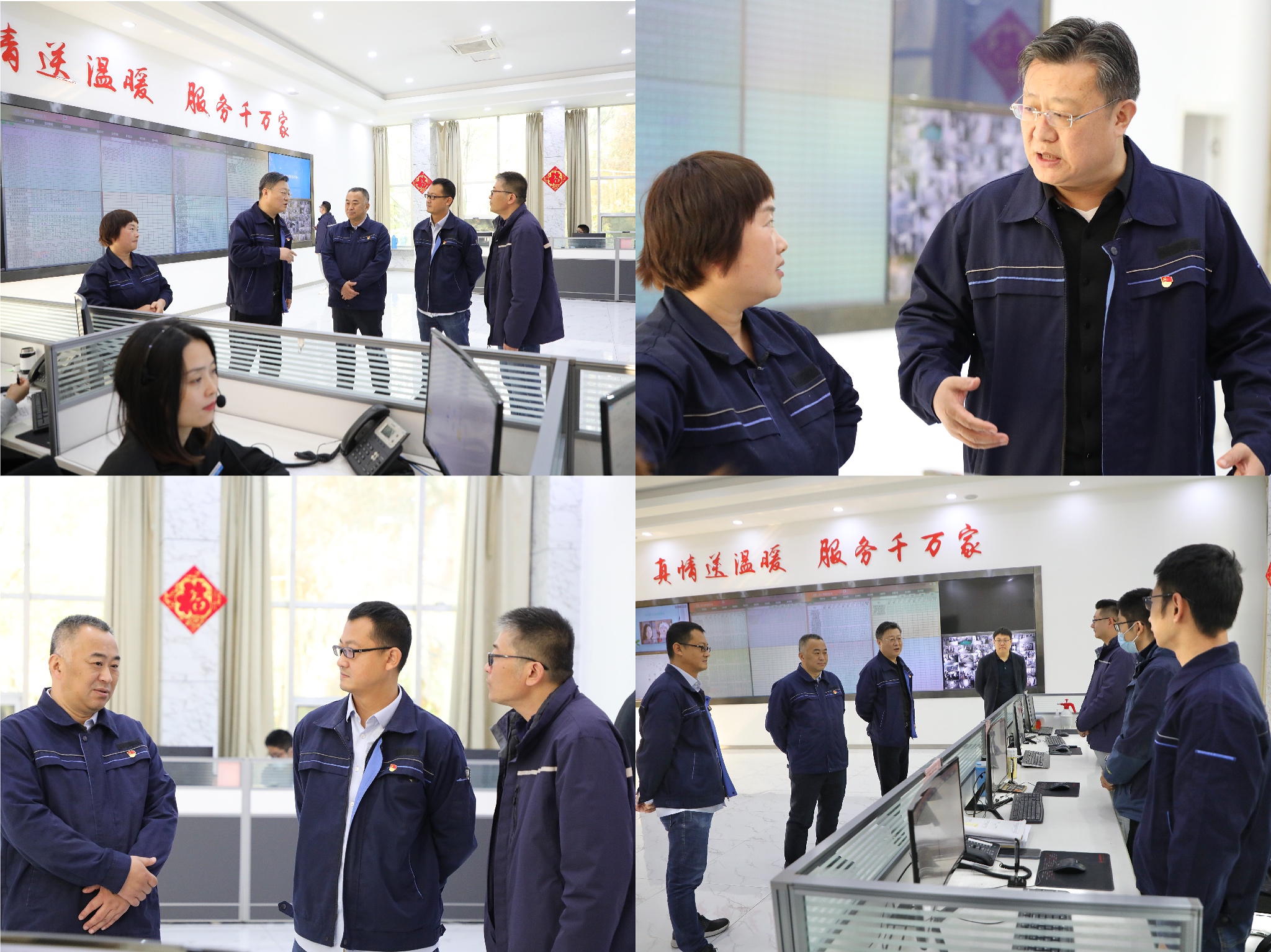 11月16日上午,濟(jì)寧四和供熱有限公司黨支部書記、董事長(zhǎng)李聲播,黨支部副書記、總經(jīng)理張璟,黨支部委員、副總經(jīng)理李超來(lái)到客服中心、監(jiān)控中心,探望慰問(wèn)努力奮戰(zhàn)在供熱服務(wù)一線的干部職工,為他們送來(lái)了企業(yè)誠(chéng)摯的慰問(wèn)和關(guān)懷。