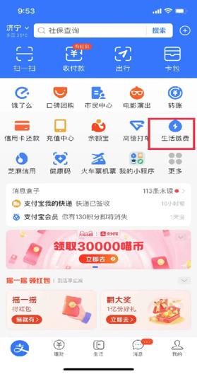 1.打開(kāi)支付寶后,選擇生活繳費(fèi)