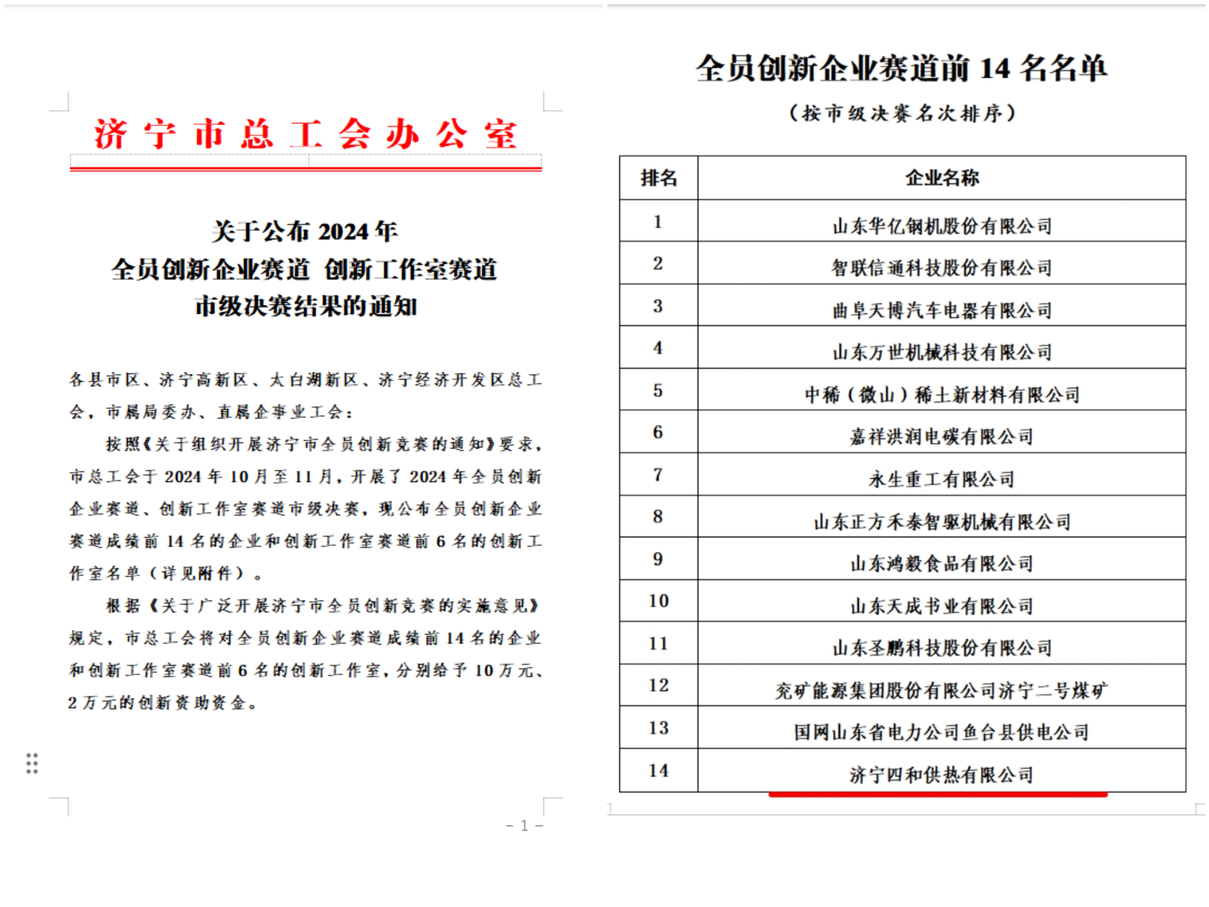 濟(jì)寧市全員創(chuàng)新競賽分全員創(chuàng)新企業(yè)、創(chuàng)新工作室2條賽道。全員創(chuàng)新企業(yè)賽道從組織領(lǐng)導(dǎo)、制度建設(shè)、載體平臺、激勵支持、成果成效等多個方面綜合考評、層層篩選。四和供熱公司憑借全員創(chuàng)新的良好理念、全面創(chuàng)新的工作機(jī)制、持續(xù)提升的科技創(chuàng)新能力,以優(yōu)異成績獲評濟(jì)寧市全員創(chuàng)新企業(yè)。